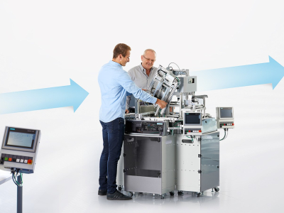 Wohin sich die Automatisierungstechnik in Verbindung mit der Digitalisierung entlang der Wertschöpfungskette entwickeln wird, zeigt der Productivity Master, eine modulare Demonstrationsanlage für individualisierte USB-Sticks von Festo. Hier passt alles – von der Mechanik über die Elektrik bis hin zur Intelligenz durch Software. Auf Basis der Festo Automatisierungsplattform sind alle Engineering-Tools, Komponenten und Lösungen in Hardware und Software ganzheitlich und praxisnah verbunden. Pressemitteilung lesen Bild Festo SE & Co. KG 03.02.2021 | Global Productivity Master weist den Weg in die ... Wohin sich die Automatisierungstechnik in Verbindung mit der Digitalisierung entlang der ... Pressemitteilung lesen