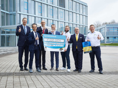 Vertreter von Vorstand und Gesellschafterfamilie überreichten am 30. März 2022 den Spendenscheck von Festo über 1 Million Euro an Herrn Benjamin Hirth von Round Table 161 Esslingen und Herrn Florian Hell, Geschäftsführer des „Freunde helfen! Konvoi“. Pressemitteilung lesen Bild Festo SE & Co. KG 31.03.2022 | Global Mitarbeitende, Vorstand und Gesellschafterfamilie ... Vertreter von Vorstand und Gesellschafterfamilie überreichten am 30. März 2022 den Spendenscheck von ... Pressemitteilung lesen